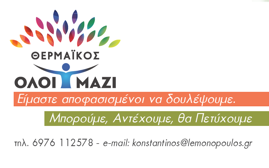 Ως Υποψήφιος Τοπικός Σύμβουλος της Δημοτικής Κοινότητας Περαίας με τον συνδυασμό “ΌΛΟΙ ΜΑΖΙ” του Υποψήφιου Δημάρχου Θερμαϊκού, Γιάννη Μαυρομάτη, δεσμεύτηκα για μια καλύτερη ποιότητα ζωής για εμάς και τα παιδιά μας.